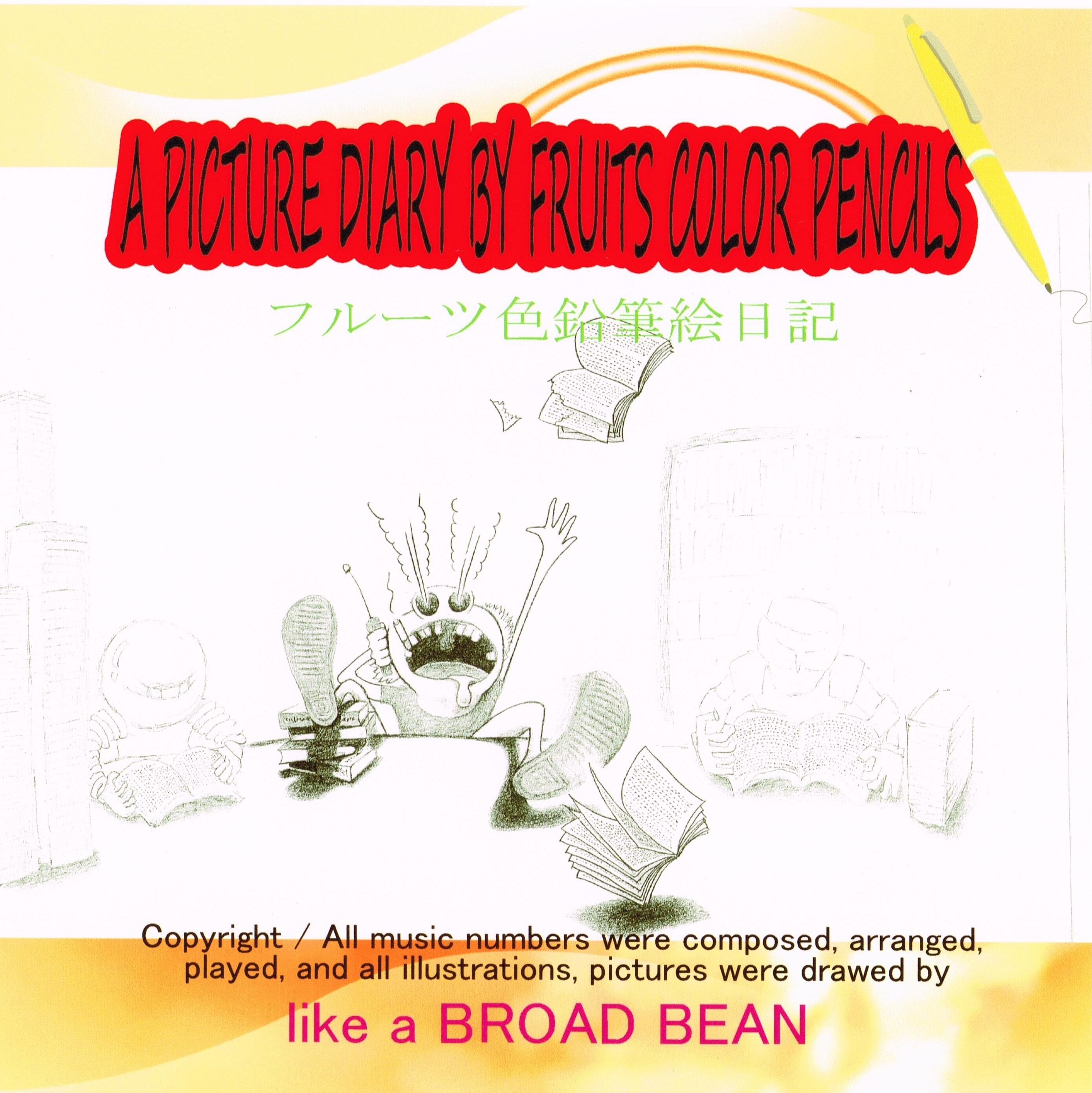 フルーツ色鉛筆絵日記/A picture diary by fruits color pencils / Iike a BROAD BEAN 作曲、編曲、演奏のオール・オリジナル 第2弾です。CDジャケットのデザ イン・イラスト・絵画も、全てlike a BROAD BEAN の作です。 曲目